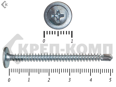 Данные саморезы имеют плоскую шляпку с шлицом под насадку Ph2. Они делятся на две основные группы: